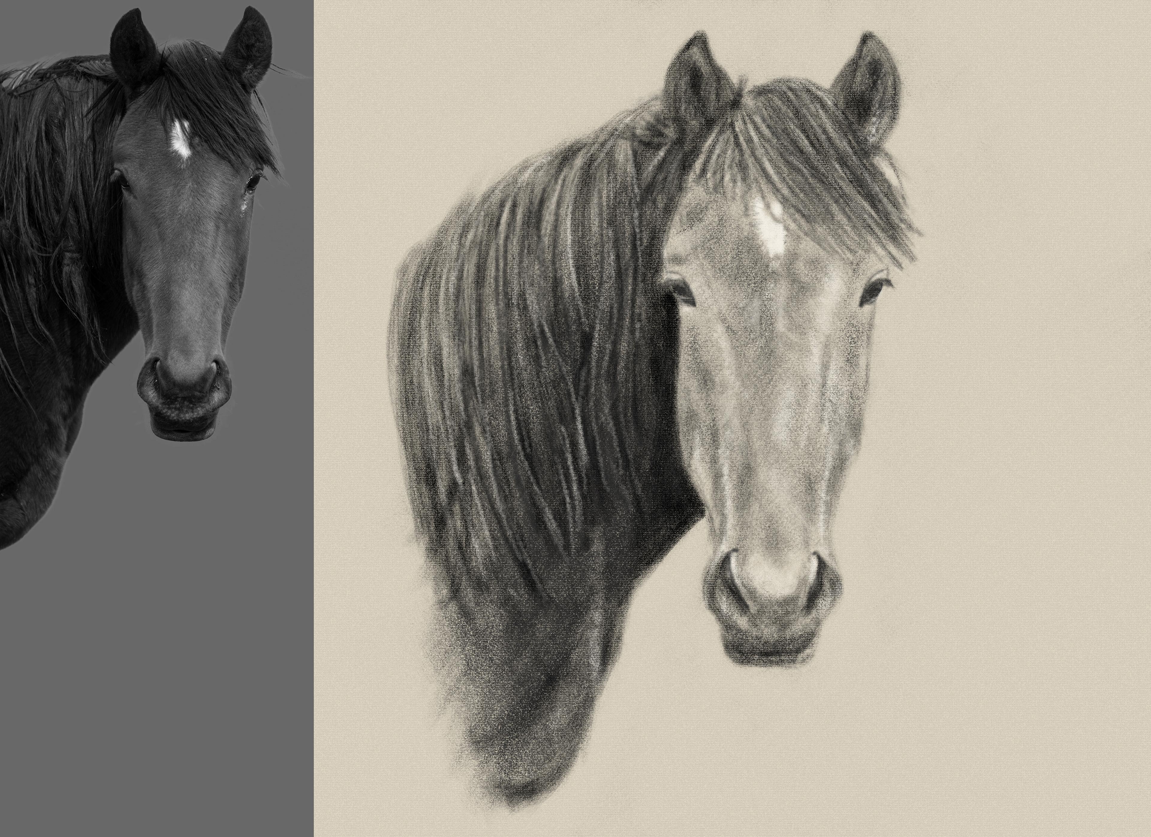Freehand Charcoal of wild horse from Onaqui Herd