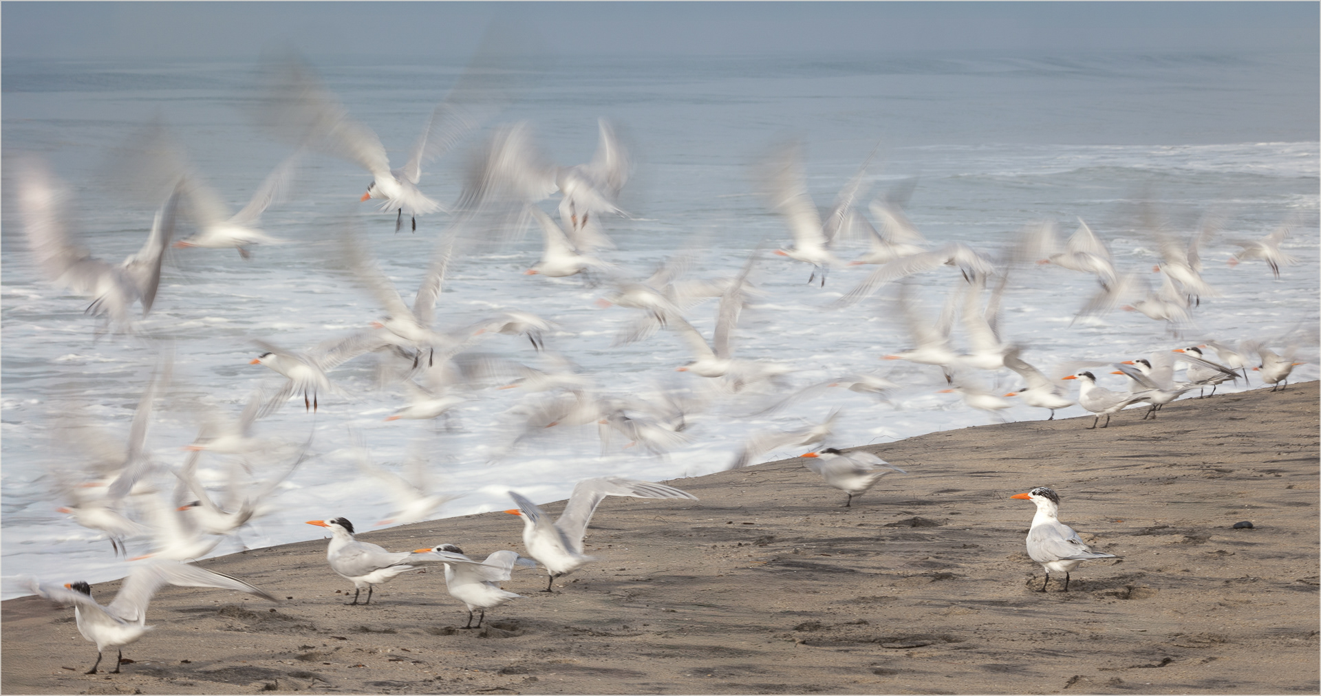 "The Last to Leave" Caspian terns on Carlsbad State Beach, CA